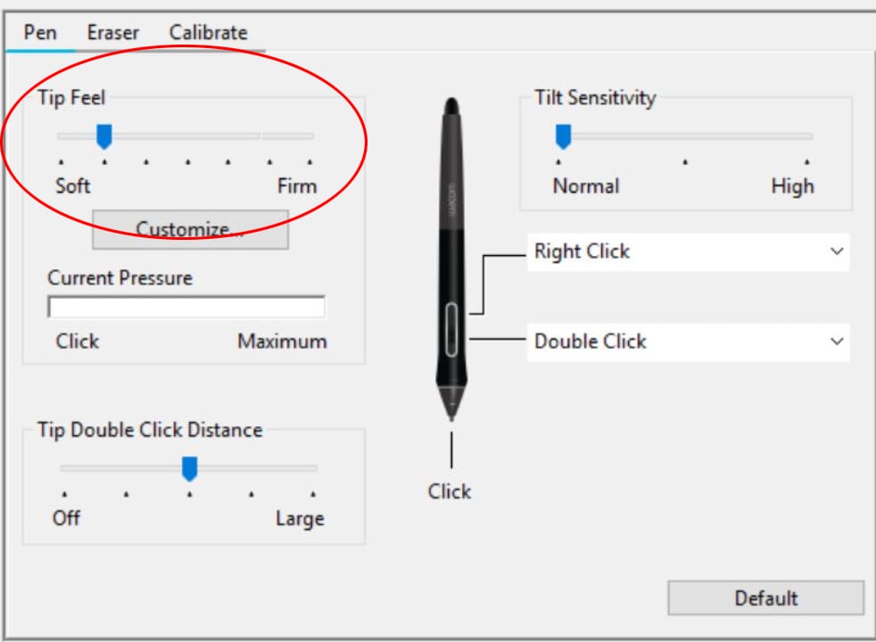 In the Wacom pen settings I have the "Tip Feel" option set to the second most sensitive setting. (see last image in gallery)