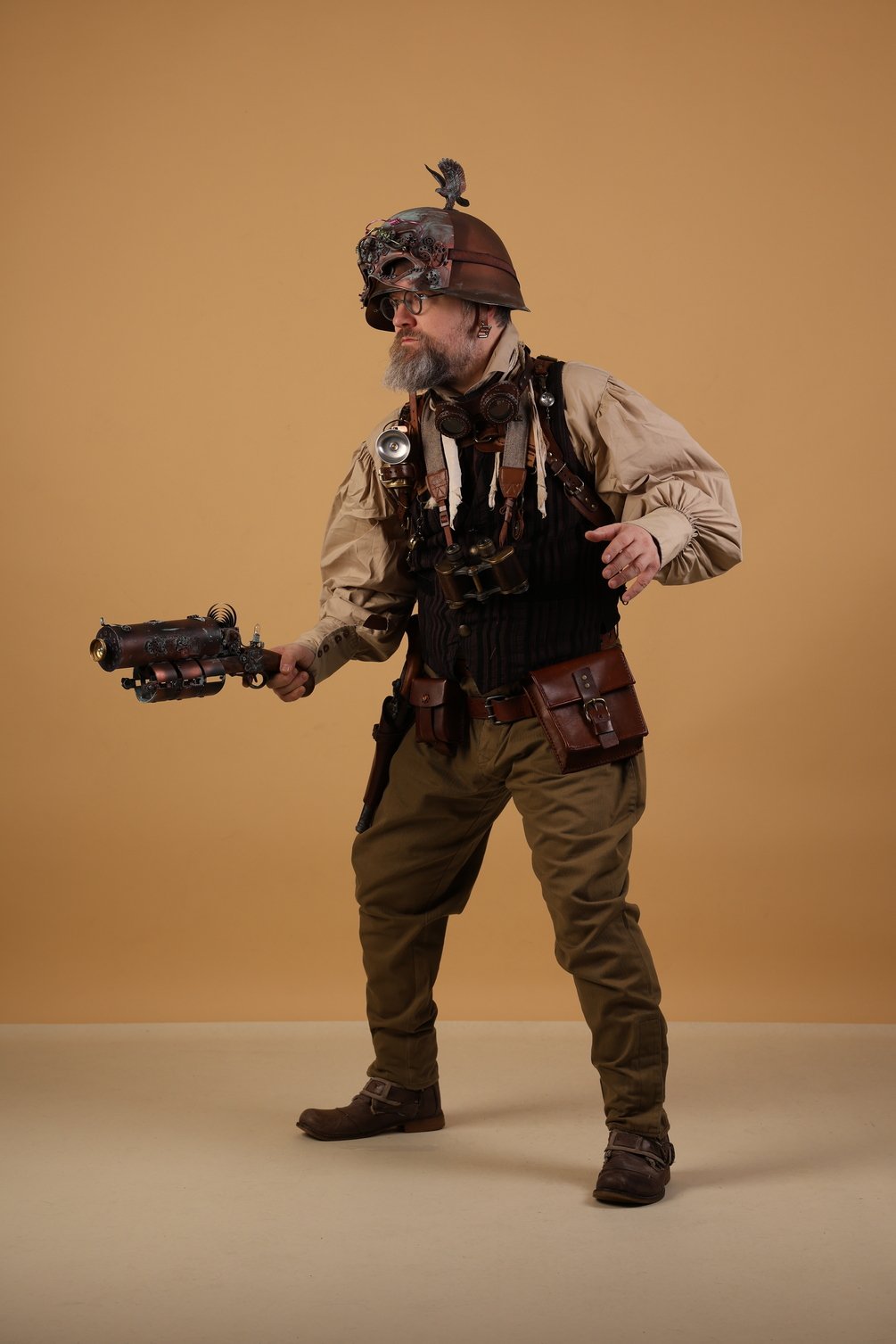 It has 500 photos in excellent quality. Multiple outfits, lots of interesting materials and fabrics, crazy self made steampunk accessoiries and weapons. Studying these photos are a sure way to get better at character design, as they are character designs by themselves!