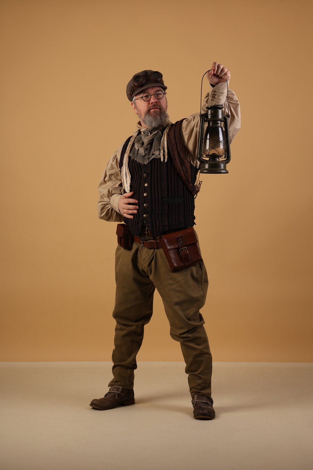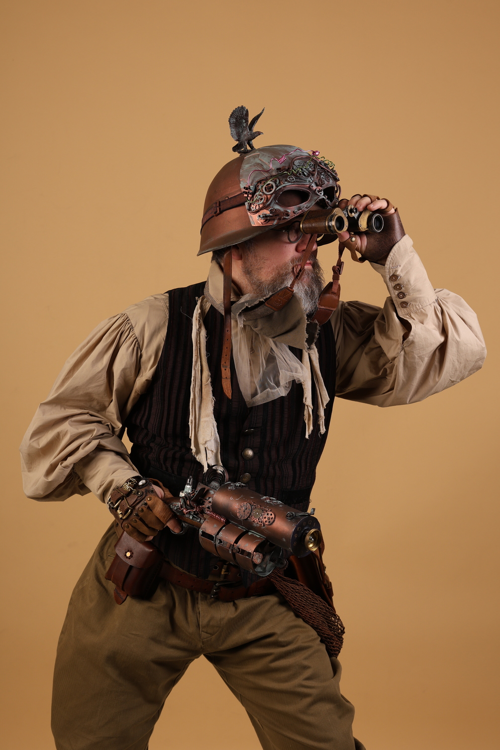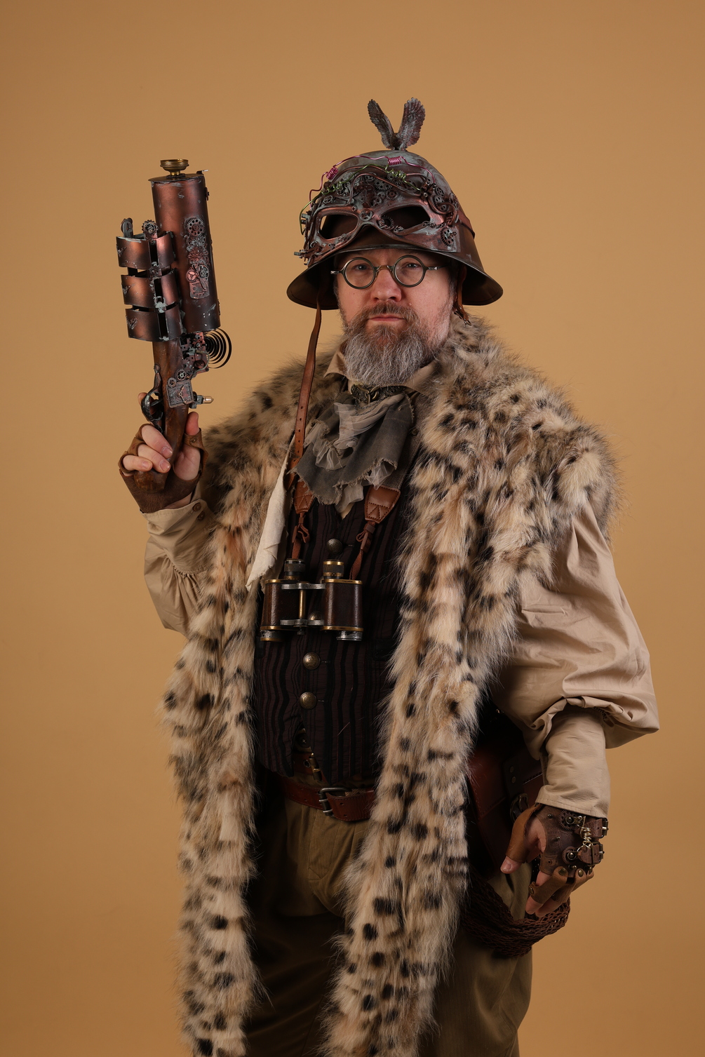 It has 500 photos in excellent quality. Multiple outfits, lots of interesting materials and fabrics, crazy self made steampunk accessoiries and weapons. Studying these photos are a sure way to get better at character design, as they are character designs by themselves!